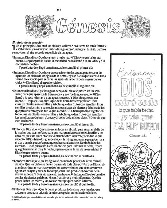 La Biblia Inspira NTV utiliza la expresión creativa para conectarte con Dios y con las Escrituras. Esta Biblia de una sola columna con amplio margen para anotaciones contiene más de 400 hermosas ilustraciones creadas por artistas latinoamericanos para colorear e inspirar la creatividad mientras lees la Palabra de Dios.
